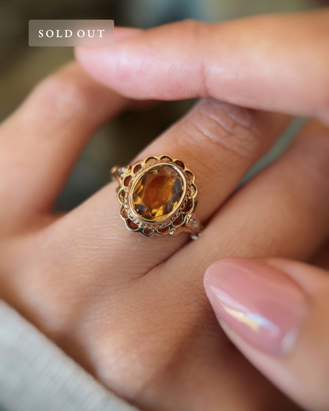 Milly | Vintage citrine diamond Oval bezel-set ring | 9k