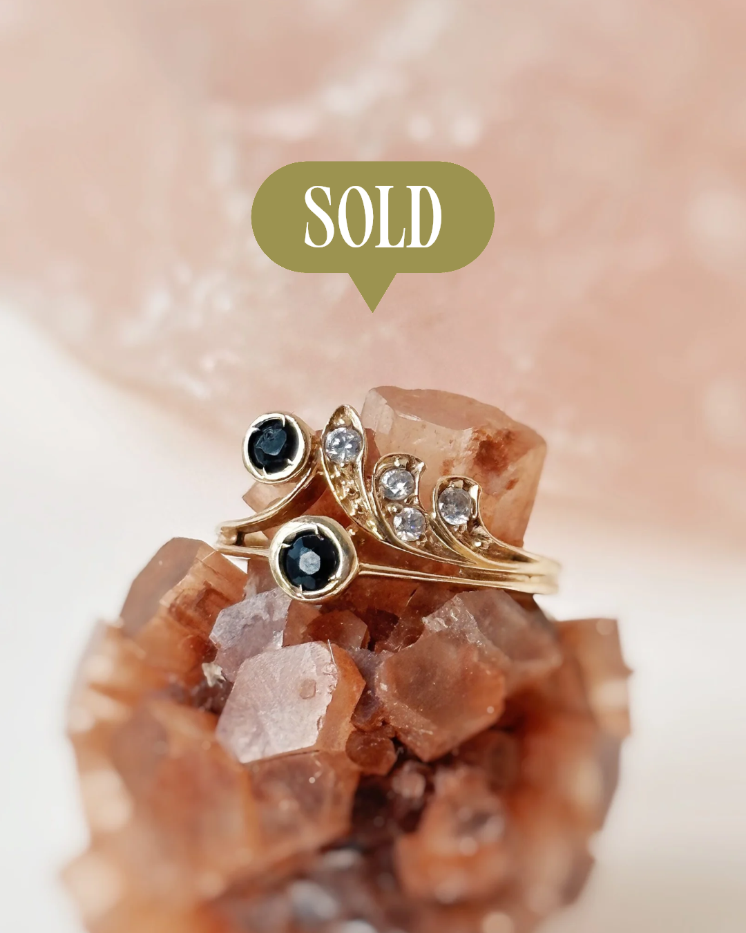 Vintage 14 carat solid gold ring with sapphire and diamonds.