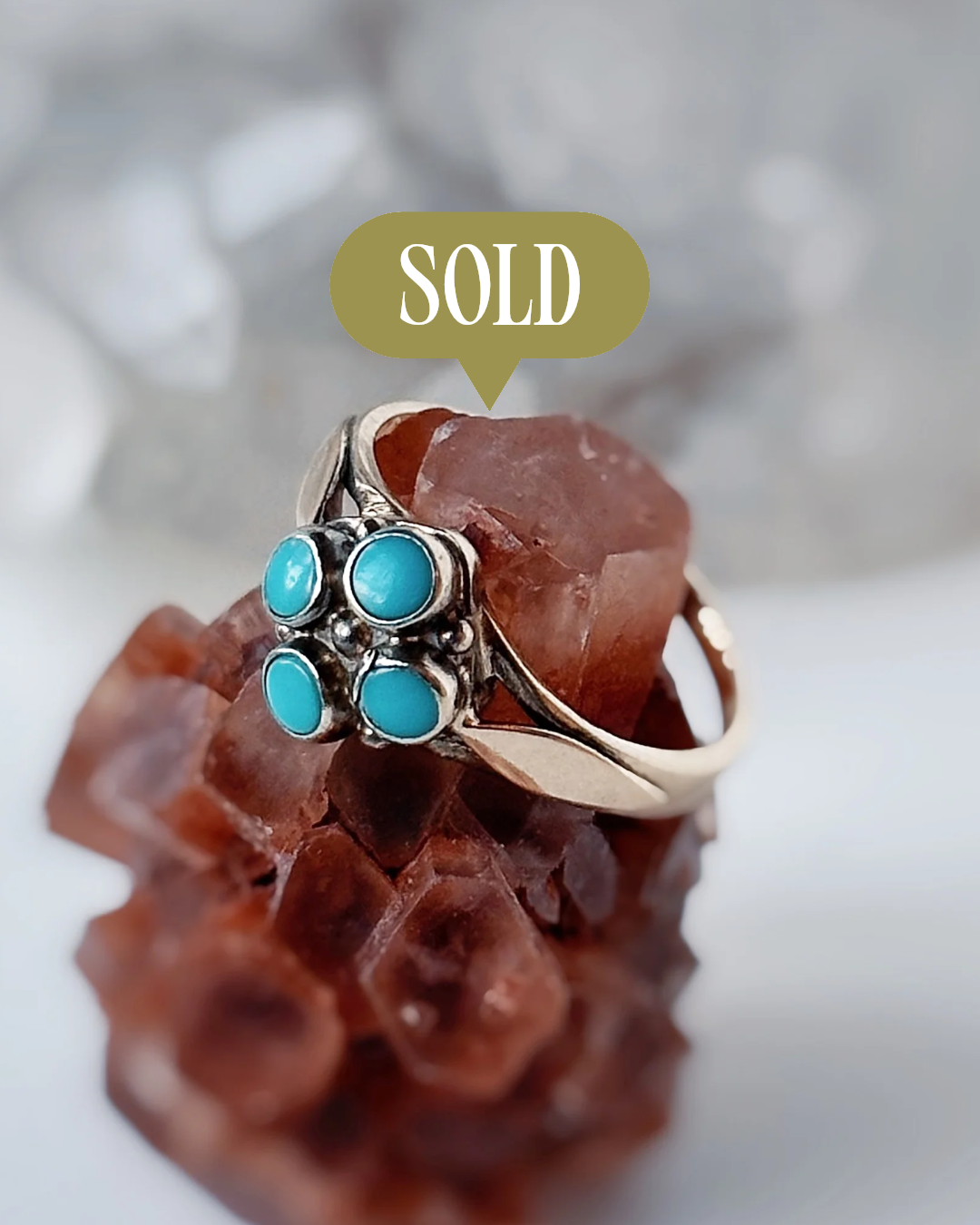 Vintage 14 carat solid gold ring with four turquoises.