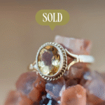 Vintage 9 karaat massief gouden solitaire ring met citrien om vinger