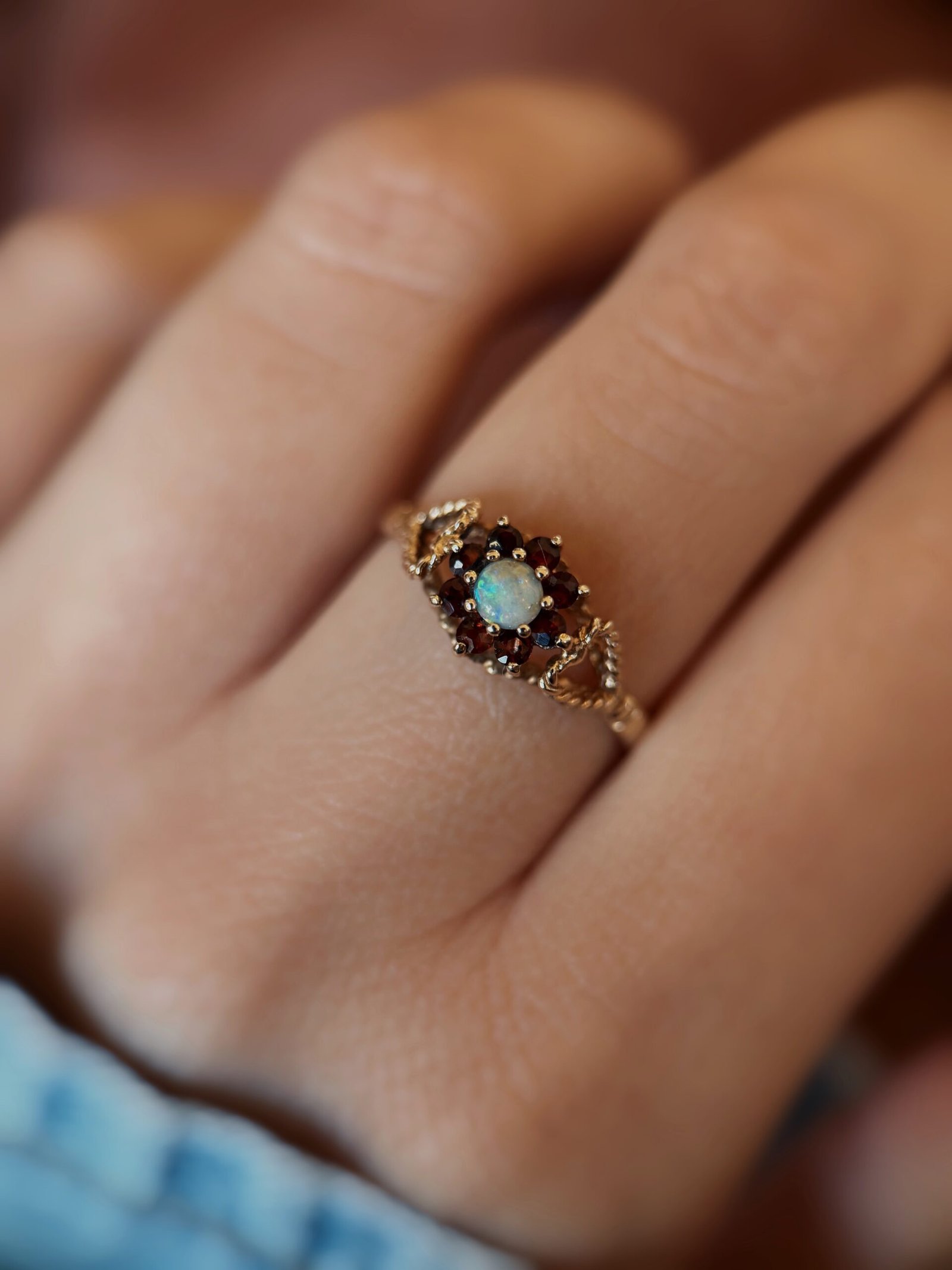 Dahlia | Vintage opal garnet cluster ring | 9ct